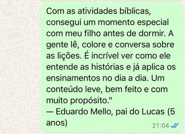 📚 A boa notícia é que com materiais simples e acessíveis, como eBooks ilustrados e atividades bíblicas, você pode transformar a rotina em momentos de conexão com Deus — mesmo sem experiência ou muito tempo disponível!