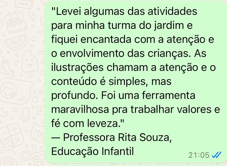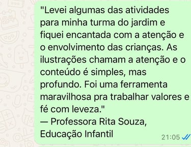 Mesmo que você nunca tenha dado aula ou feito devocional, com essas atividades prontas você vai ensinar princípios cristãos como amor, obediência e fé de um jeito simples e encantador. Ideal para usar em casa, na igreja ou na escola!